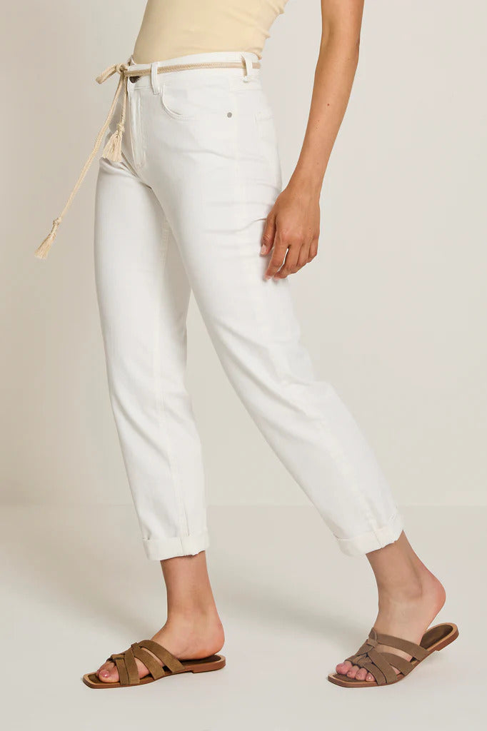 Bobby heeft een hoge taille met een losser vallende pasvorm over het hele been.