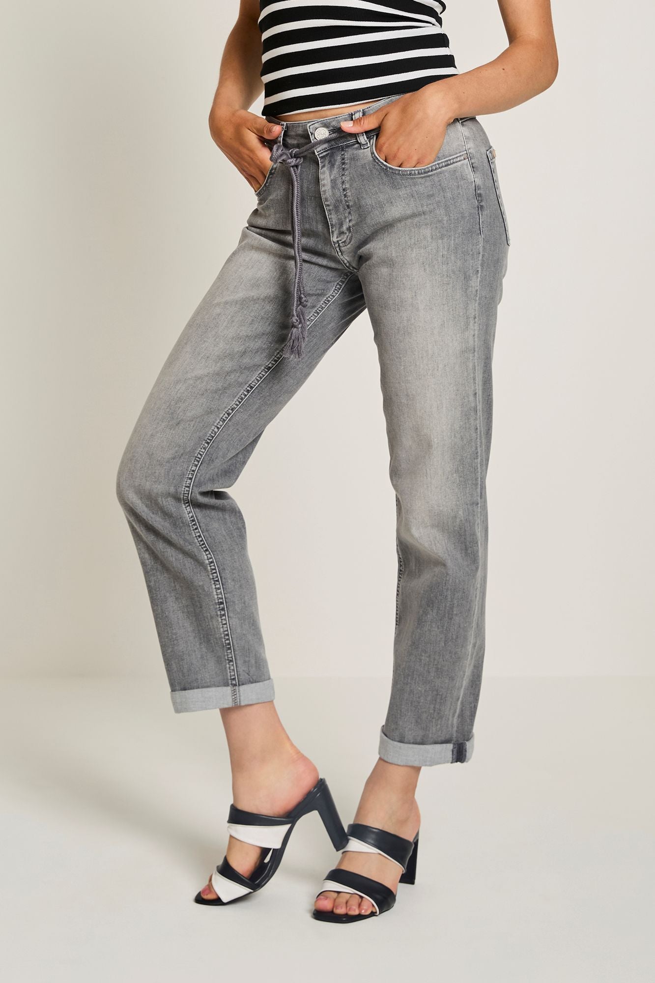 Bobby heeft een hoge taille met een losser vallende pasvorm over het hele been.