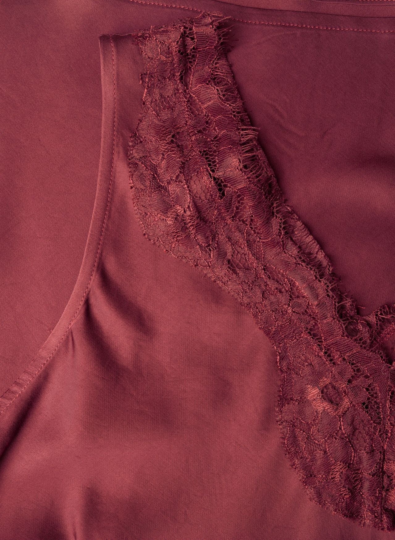 Dit topje van viscose voelt heerlijk zacht en licht aan, met een subtiele glans die de look direct een fijne upgrade geeft. De V-hals is afgewerkt met delicaat kant, wat zorgt voor een vrouwelijke touch zonder overdreven te zijn.