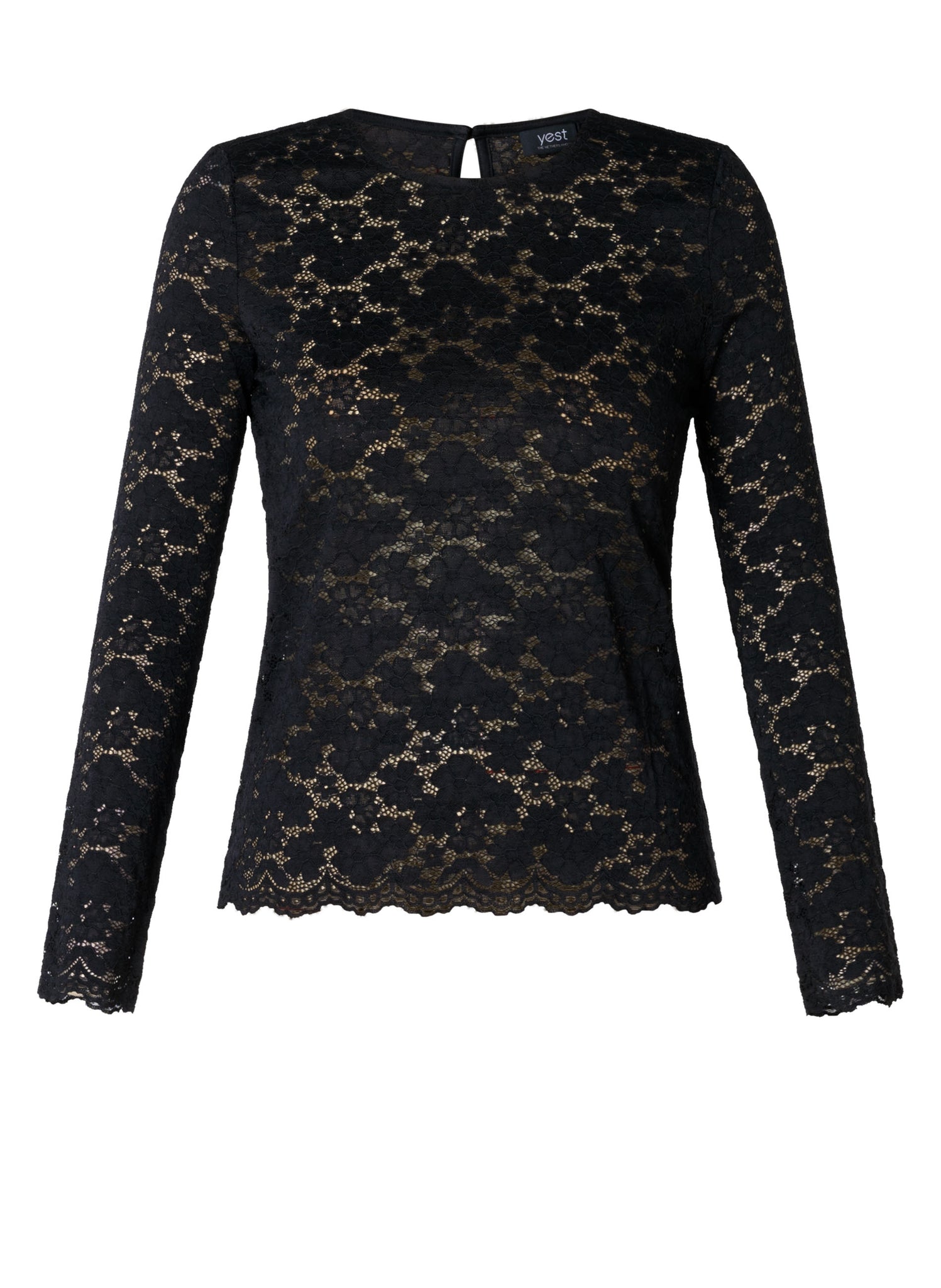 Deze kanten top is echt prachtig! Zacht, stretchy en met die geschulpte rand gewoon supervrouwelijk. En het leuke is: hij staat niet alleen mooi op zichzelf, maar ook als accent onder een grove trui. Zo zie je net een randje kant – subtiel, maar zó leuk.