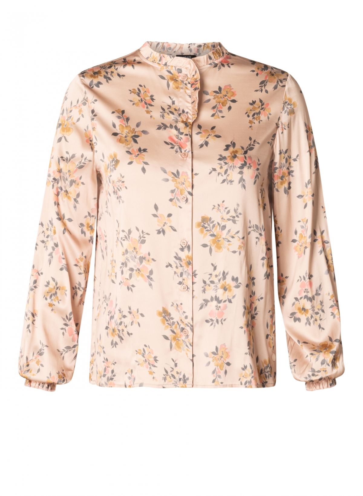 Lekker casual met een vrouwelijk tintje! De zacht glanzende stof en de fijne bloemenprint maken deze blouse perfect voor elke dag. De ruffle bij de hals en de elastische mouwen geven ‘m een speelse touch.