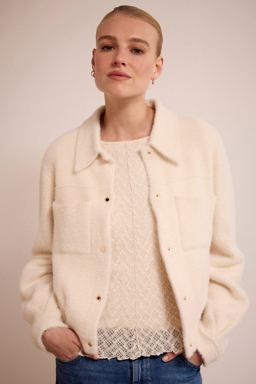 Het Faux Fur Knitted Jacket is een warm en elegant statement piece dat comfort en stijl perfect combineert. Gemaakt van 100% polyamide, voelt dit jasje heerlijk zacht en licht aan, met een fluffy faux fur look die meteen in het oog springt. De knitstructuur geeft het jasje extra souplesse, terwijl de kleuren Midnight, Moss en Stone het perfect maken voor het herfstseizoen – stijlvol, rijk en gemakkelijk te combineren. De open of licht aangesloten pasvorm maakt dit item ideaal om over een blouse, jurk of coltrui te dragen. Of je het nu casual draagt met denim of als chique finishing touch op een avondlook, dit jasje voegt direct warmte en karakter toe aan je outfit. Een must-have voor wie houdt van comfort met een verfijnde uitstraling.